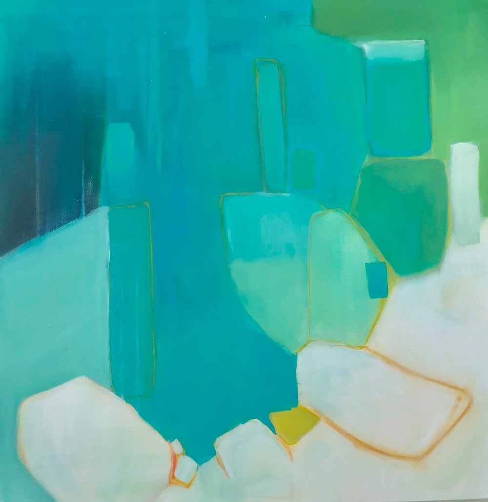 This painting collection was inspired by the lush rainy season in Northern California. In the winter, the desert turns green almost overnight, and rolling hills that were brown and lifeless are suddenly carpeted with gorgeous color. I love to watch as the wind rolls through the hills, flooding down into the valleys below, and swelling across the landscape in waves.